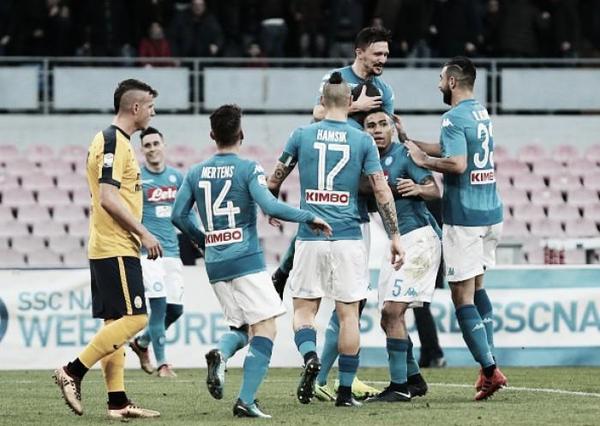 Napoli sofre, mas derrota Hellas Verona e se mantém no topo da Serie A